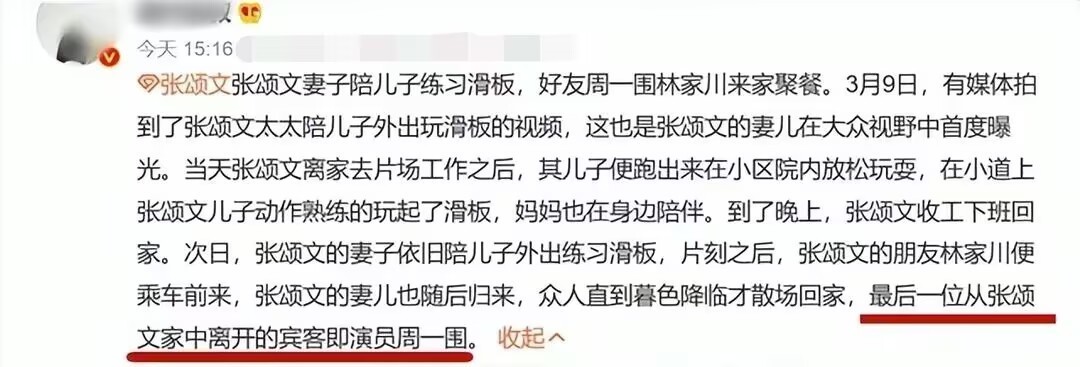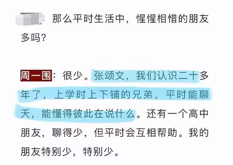 2023年3月,有媒体捕捉到周一围深夜造访张颂文家中共进晚餐,且是最后一个离席的。这一细微之处,再次验证了他们之间牢固的友情。