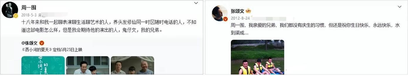 周一围并未像其他名人那样,大肆“赞扬”张颂文,或高调展示兄弟情深。